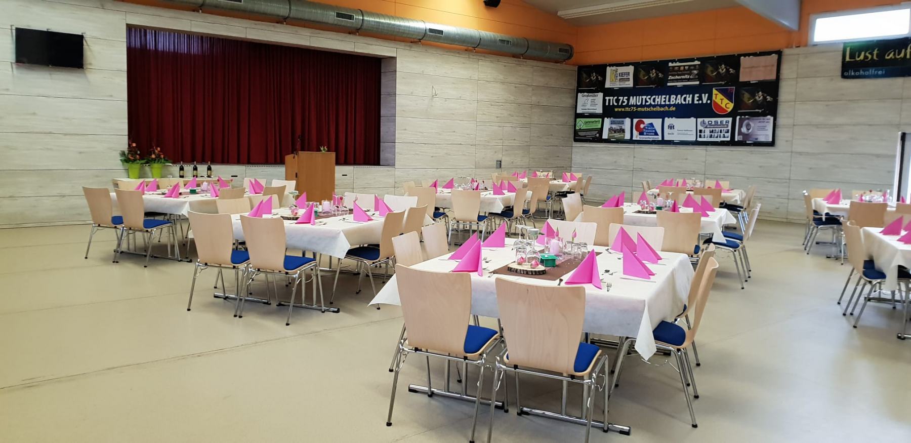 Unsere frisch renovierte Bocksbachhalle steht neben dem Tischtennisspiel, dem Schulsport und den örtlichen Vereinen auch privaten Personen und gewerblichen Zwecken gegen Mietgebühr zur Verfügung. Die Halle weißt mit ihrer Grundfläche von 18x18m eine ausreichend große Fläche für Ihre Veranstaltung aus und bietet mit separater Bühne, Küche und sanitären Anlagen das richtige Gesamtpaket.