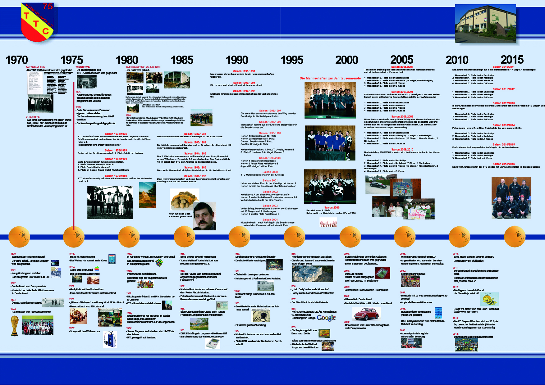 Der TTC'75 Mutschelbach e.V. wurde 1975 als reiner Tischtennisverein gegründet und blickt auf über 40 Jahre erfolgreiche Vereinsgeschichte zurück.
